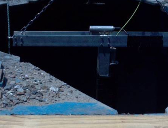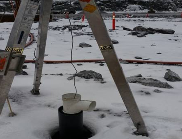 This image shows the top of a 6” borehole used to ensonify a flooded mine stope.