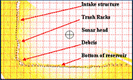 Sonar data showing concrete spalling on a dam face.